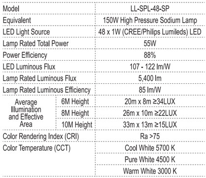 - Unique optical design & retangular beam, suitable for roadway illumination