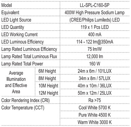 - Arc-shaped heat sink, self-cleaning ability improved by residue including dust easily carry away with rainfall